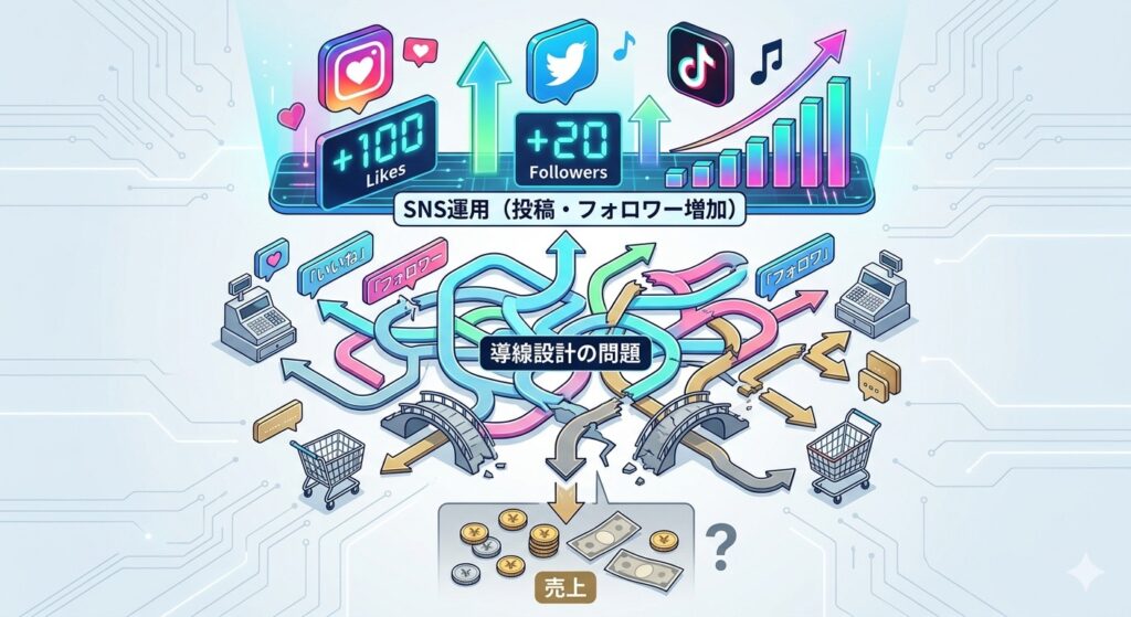 SNSを熱心に運用しているのに売上につながらない——その原因の多くは「発信と導線が切り離されている」ことにあります。